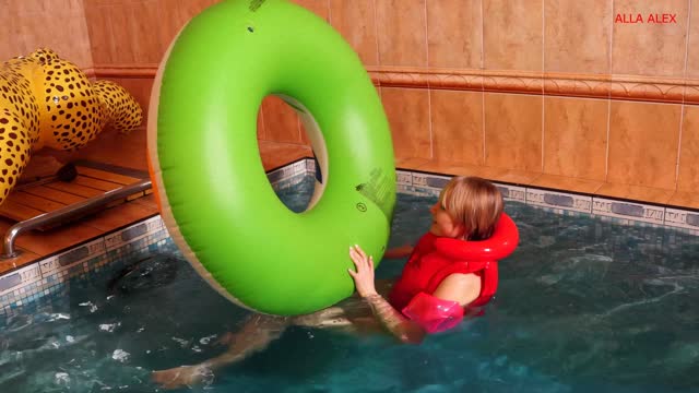Alla hot fucks a big inflatable ring in the pool and gets an orgasm and wears an inflatable vest and bandages!!!