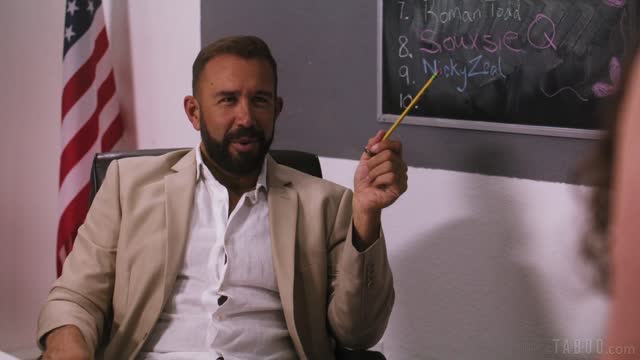 Then he takes her to the floor where the action heats up more! He rails into her from different positions and his hot abs flex with each pump. She might be getting rug burned but she doesn’t care, it feels so good! He cums from fucking her doggy style and completely drenches her hole with his jizz!
